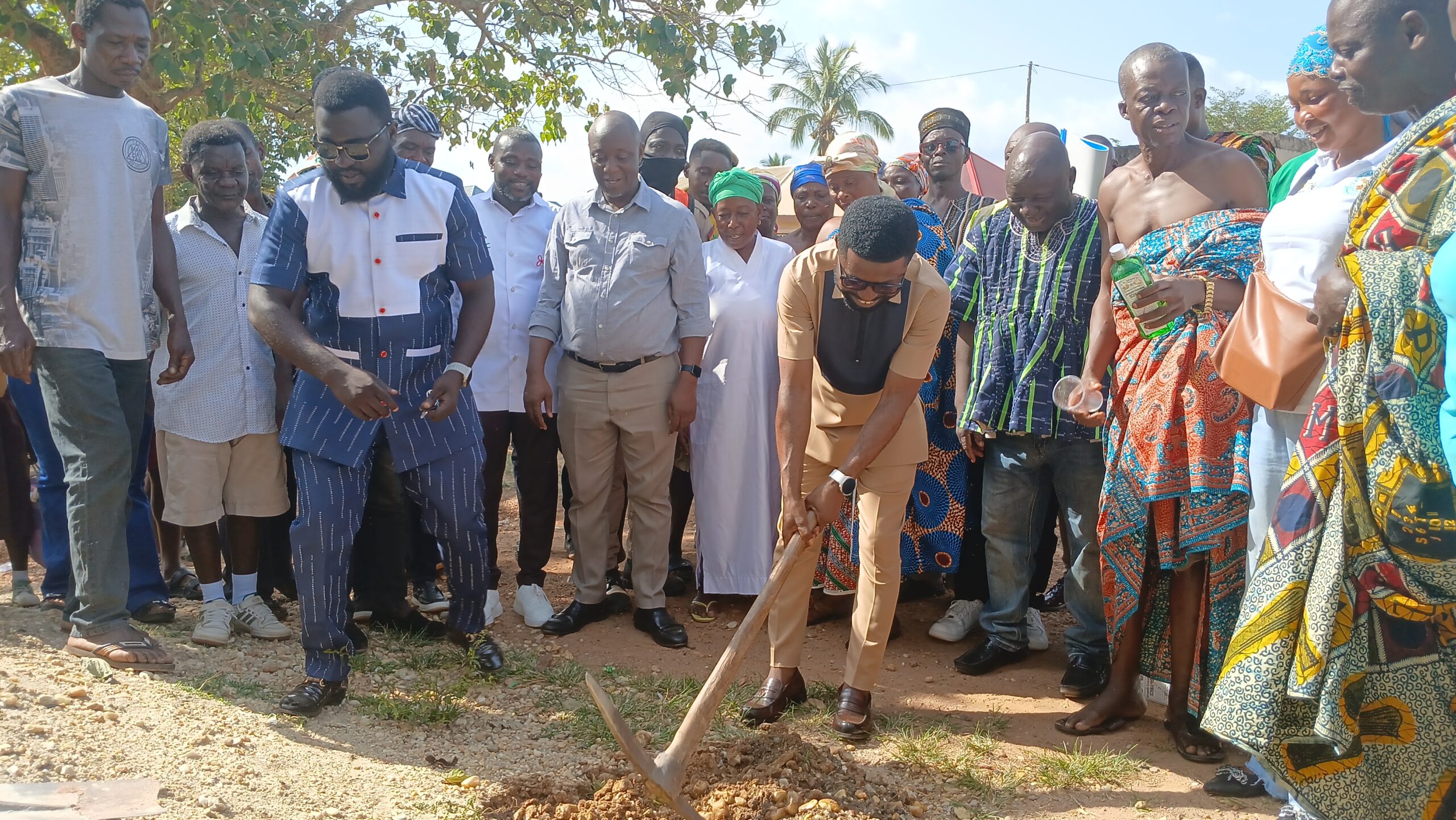Hon. Issahak Ibrahim, the District Chief Executive, has cut sod for the construction of a chip compound at Nwasamire and a six-unit classroom block at Agogoso, both funded by the Common Fund.